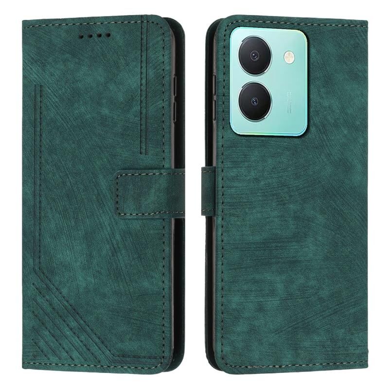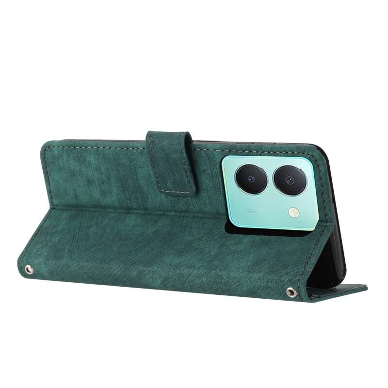 Θήκη τηλεφώνου από δέρμα με υφή και ραβδωτό σχέδιο για vivo Y78 / vivo Y36 με κορδόνι (Καφέ)