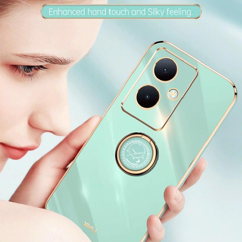 For vivo Y78+ XINLI Straight Edge 6D Electroplate TPU Phone Case with Ring Holder(Cherry Purple) (XINLI)
