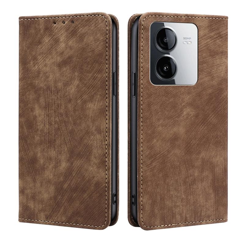 Θήκη τηλεφώνου από δέρμα με μαγνήτη και αντι-κλοπής RFID για vivo Y78T 5G / iQOO Z8x 5G (Καφέ)