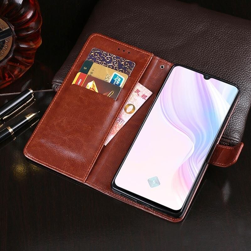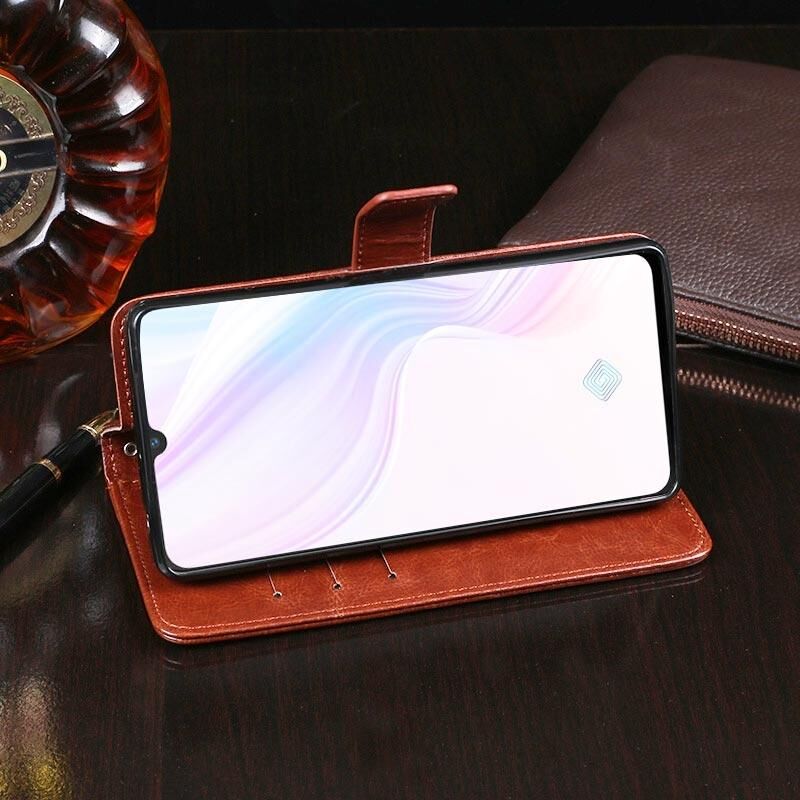 Θήκη δέρματος οριζόντιας αναδίπλωσης για Vivo Y9s idewei με υφή Crazy Horse, με βάση & υποδοχές καρτών & πορτοφόλι (Μαύρο) (idewei)