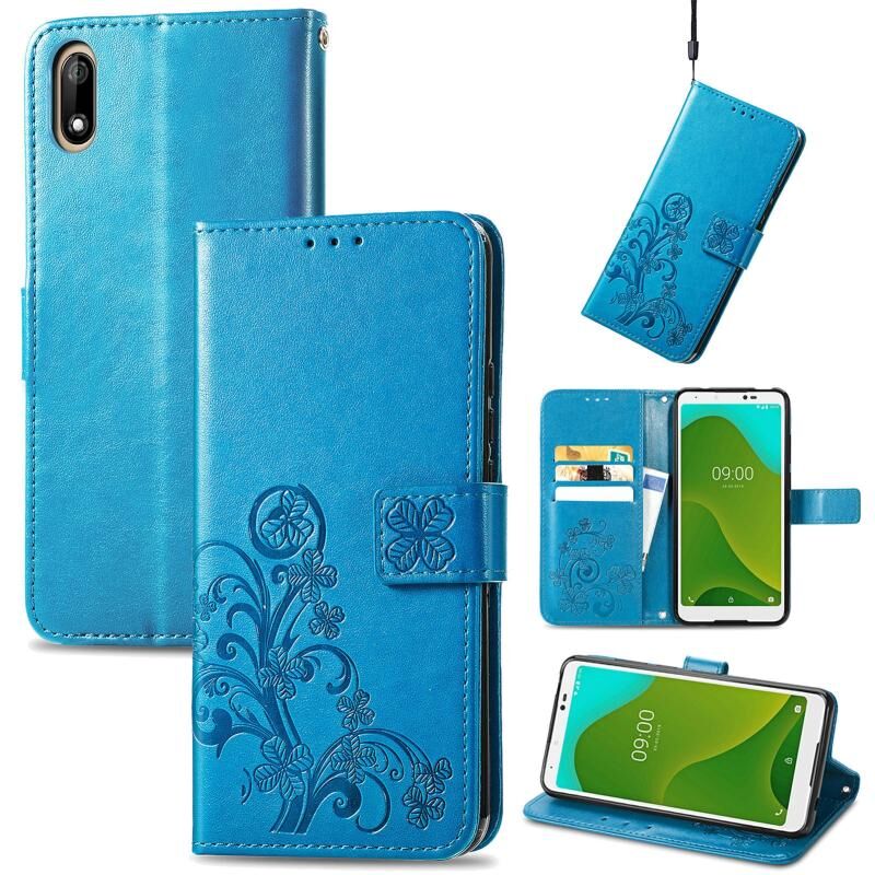 Για το Wiko Jerry 4 τετράφυλλο κούμπωμα ανάγλυφο αγκράφα κινητό τηλέφωνο προστασία δερμάτινη θήκη με κορδόνι & υποδοχή για κάρτες & πορτοφόλι & βραχίονα λειτουργία (μπλε)