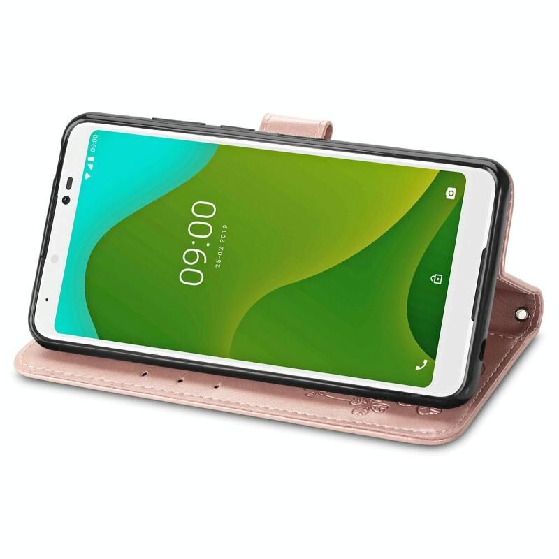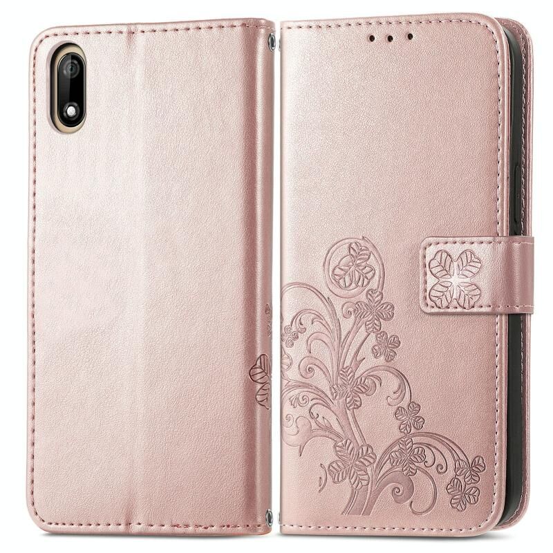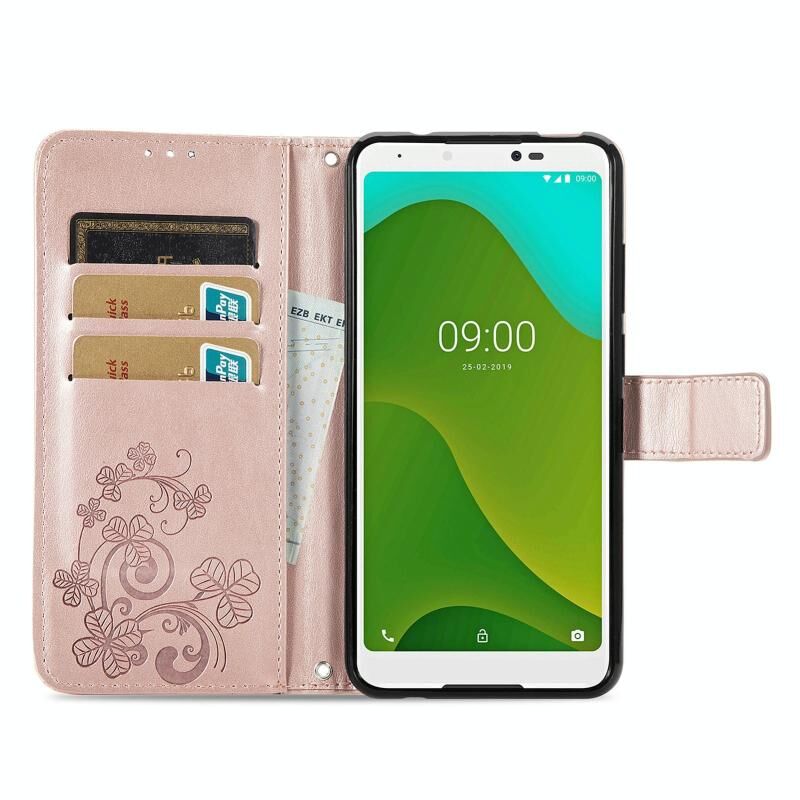 Για το Wiko Jerry 4 Τέσσερα φύλλα κούμπωμα ανάγλυφο αγκράφα κινητό τηλέφωνο προστασία δερμάτινη θήκη με κορδόνι & υποδοχή για κάρτες & πορτοφόλι & βραχίονα λειτουργία (Rose Gold)