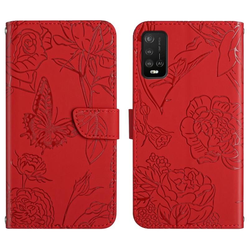 Θήκη τηλεφώνου από δέρμα με ανάγλυφο σχέδιο πεταλούδας και παιώνιας για Wiko Power U10 / U20 (Κόκκινο)