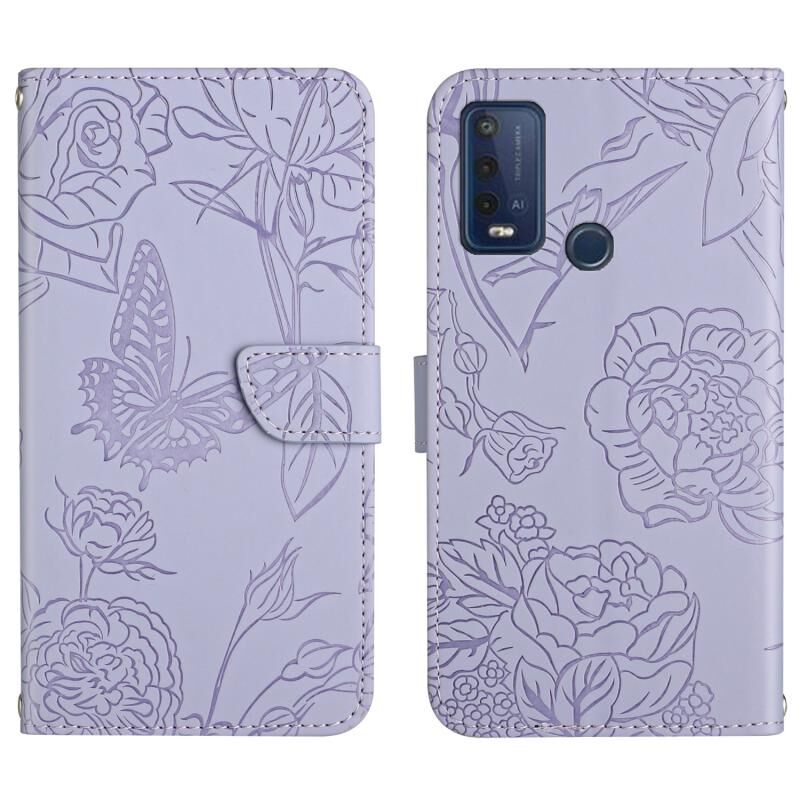 Θήκη τηλεφώνου Wiko Power U30, Δερμάτινη με ανάγλυφο σχέδιο πεταλούδας και παιώνιας, αίσθηση δέρματος (Μωβ)