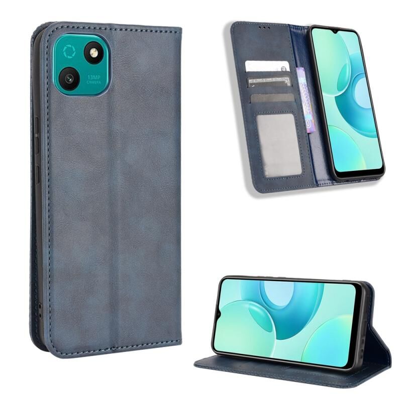 Για Wiko T10 Μαγνητική πόρπη ρετρό υφή δερμάτινη θήκη τηλεφώνου (μπλε)