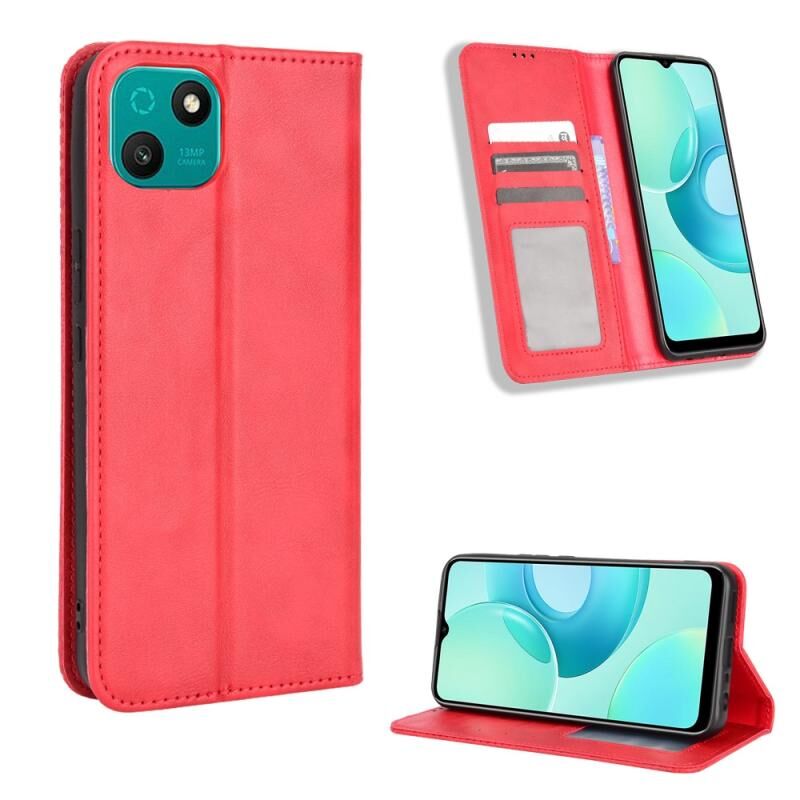 Για το Wiko T10 Μαγνητική πόρπη ρετρό υφή δερμάτινη θήκη τηλεφώνου (Κόκκινο)