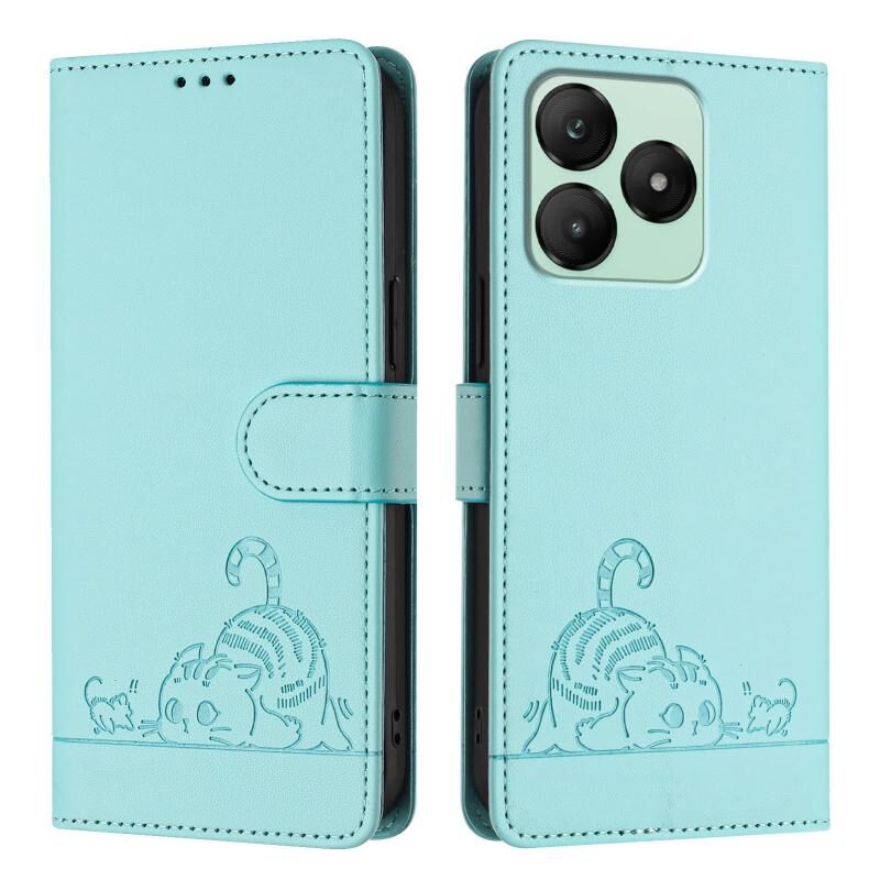 Θήκη τηλεφώνου Wiko T20 Cat Rat ανάγλυφη από δέρμα με RFID και λουρί (Μέντας Πράσινο)