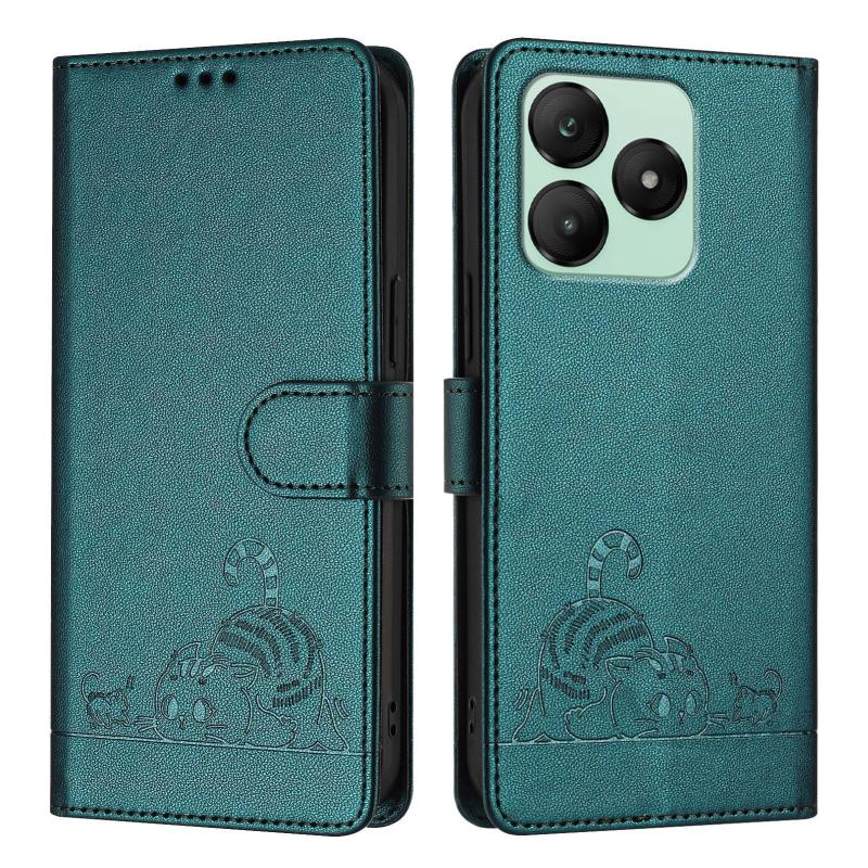 For Wiko T20 Cat Rat Embossed RFID Leather Phone Case with Lanyard(Peacock Green)