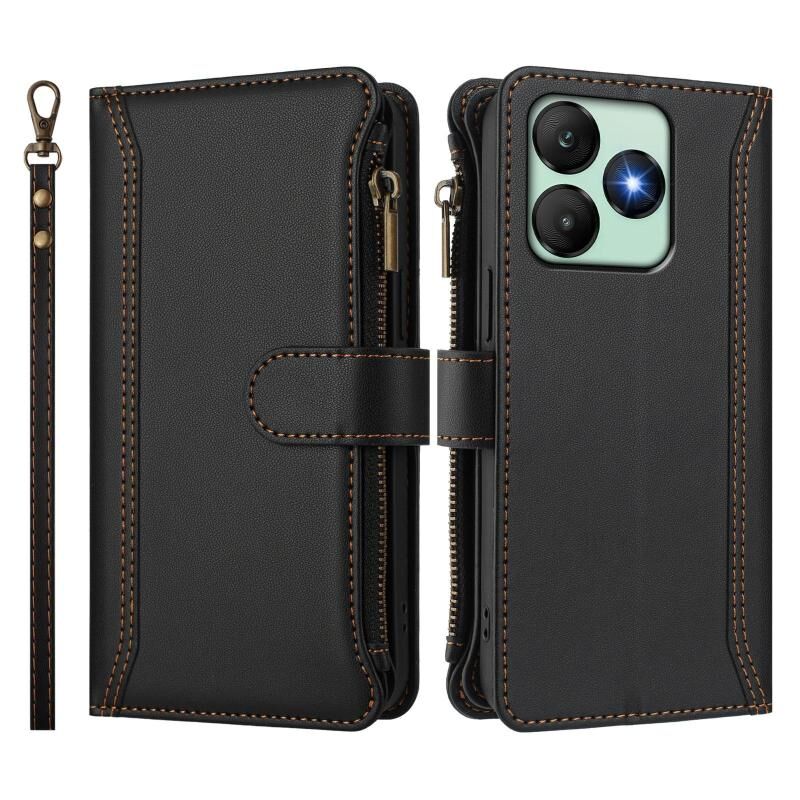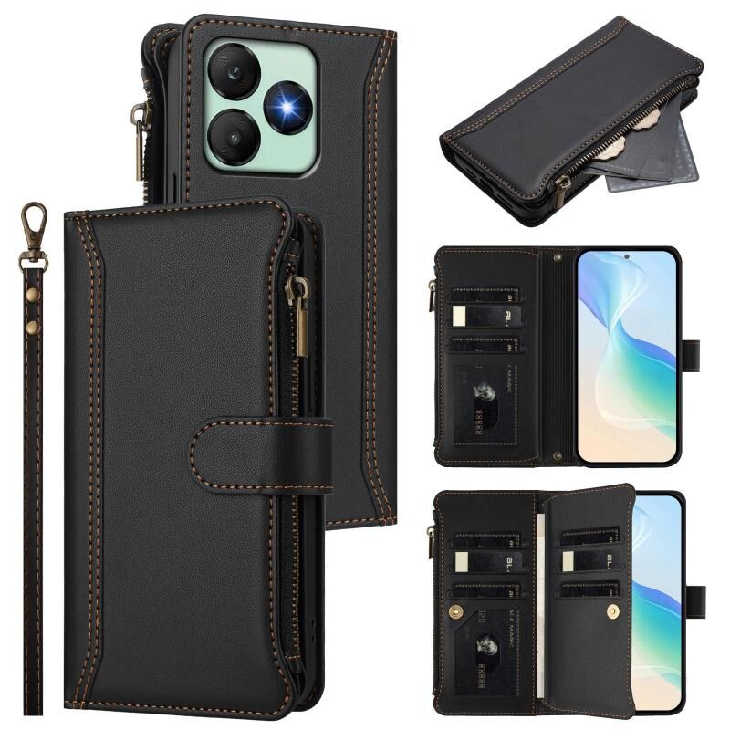 For Wiko T20 Magnetic Closure 9 Card Slots Zipper Leather Case with Hand Strap(Black)