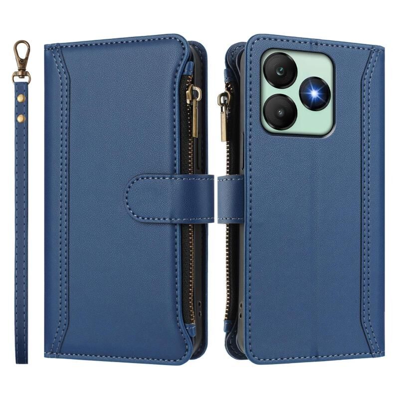 For Wiko T20 Magnetic Closure 9 Card Slots Zipper Leather Case with Hand Strap(Dark Blue)