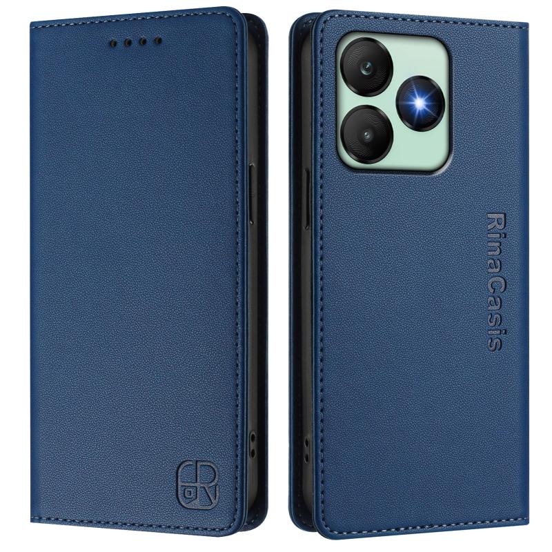 For Wiko T20 RC01 Dual-Folded Magnetic Suction RFID Leather Phone Case(Dark Blue)