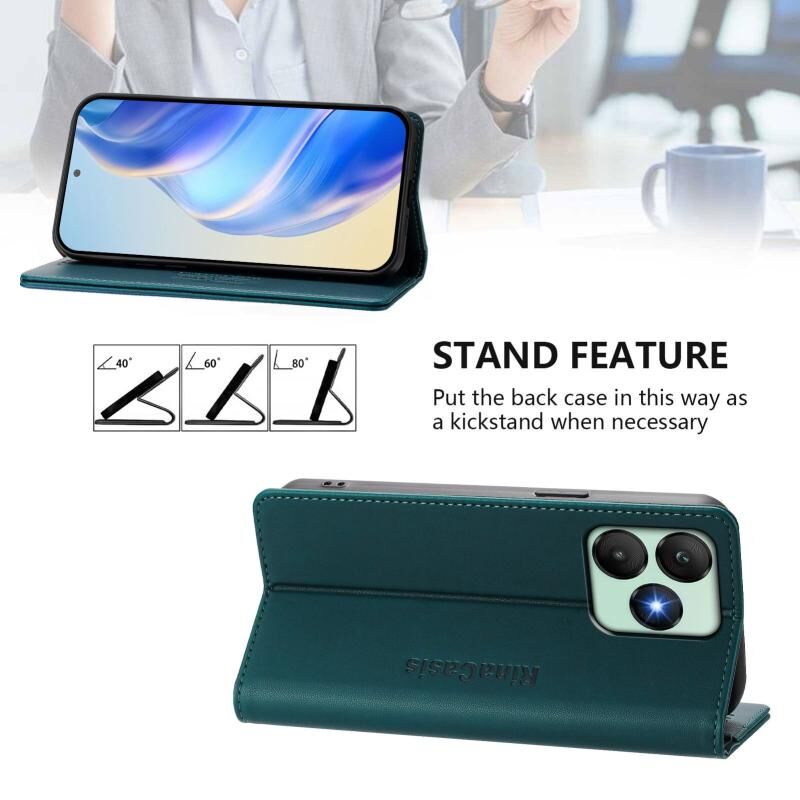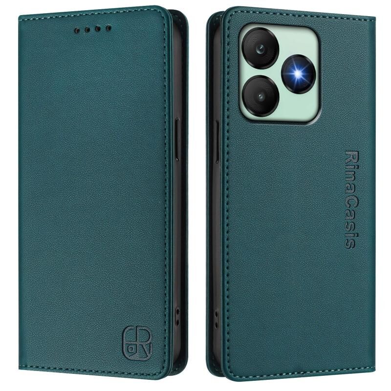 For Wiko T20 RC01 Dual-Folded Magnetic Suction RFID Leather Phone Case(Dark Green)