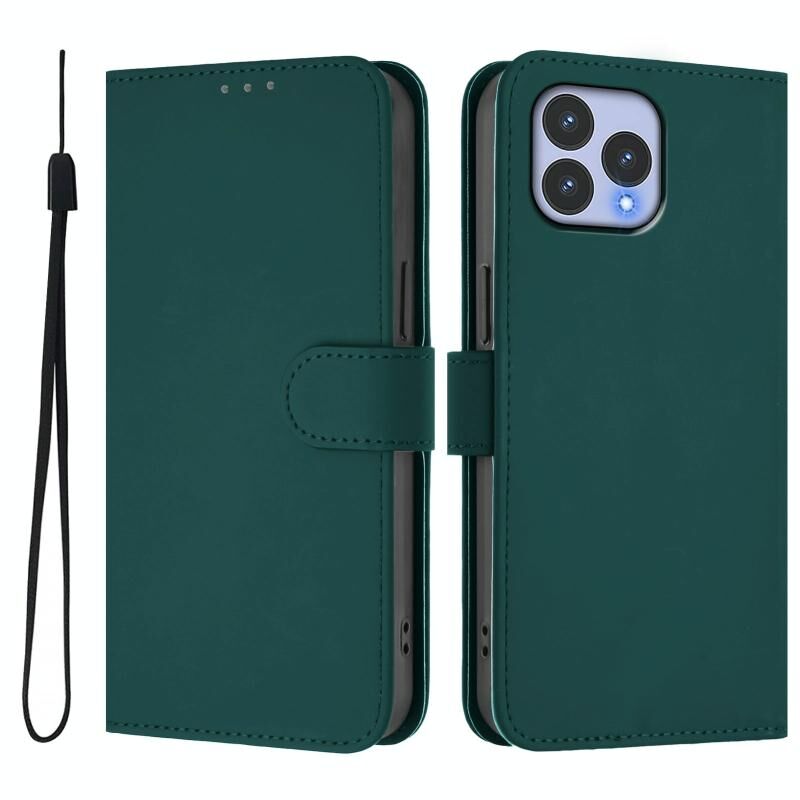 Για το Wiko T60 / Cubot P80 Skin Feel Solid Color δερμάτινη θήκη τηλεφώνου με κορδόνι (σκούρο πράσινο)