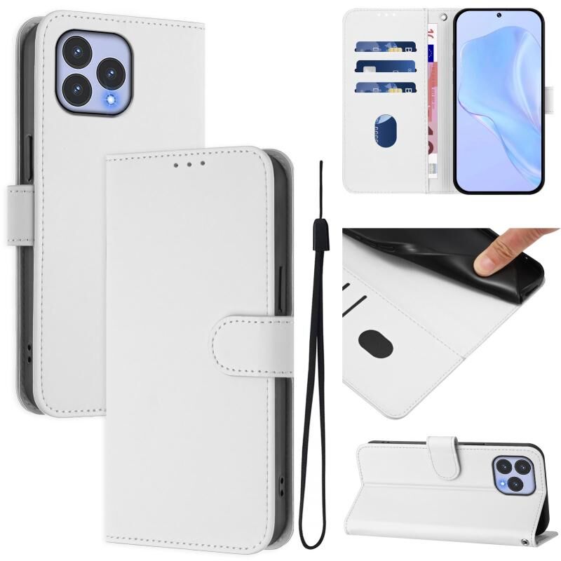 Για το Wiko T60 / Cubot P80 Skin Feel Solid Color δερμάτινη θήκη τηλεφώνου με κορδόνι (λευκό)