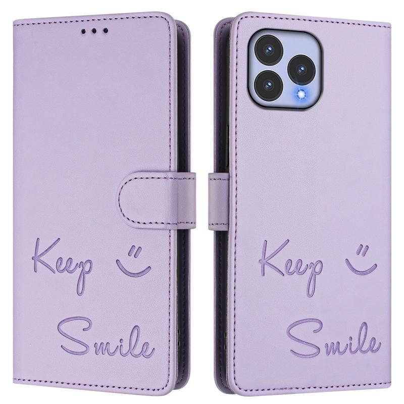 Για Wiko T60 / Cubot P80 Smile ανάγλυφο RFID δερμάτινη θήκη τηλεφώνου (Light Purple)