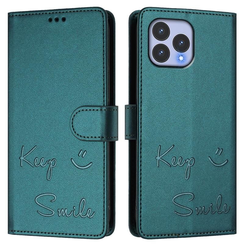 Για Wiko T60 / Cubot P80 Smile ανάγλυφο RFID δερμάτινη θήκη τηλεφώνου (Πράσινο παγώνι)