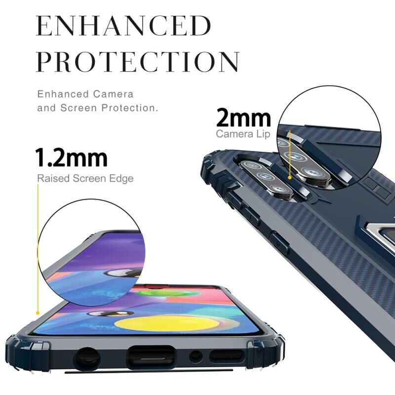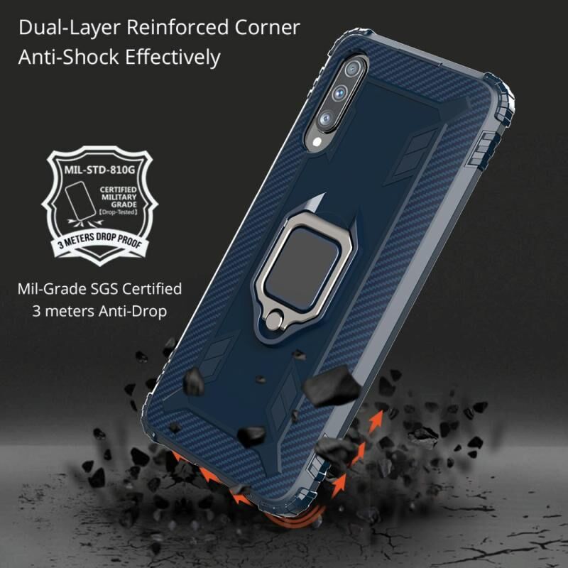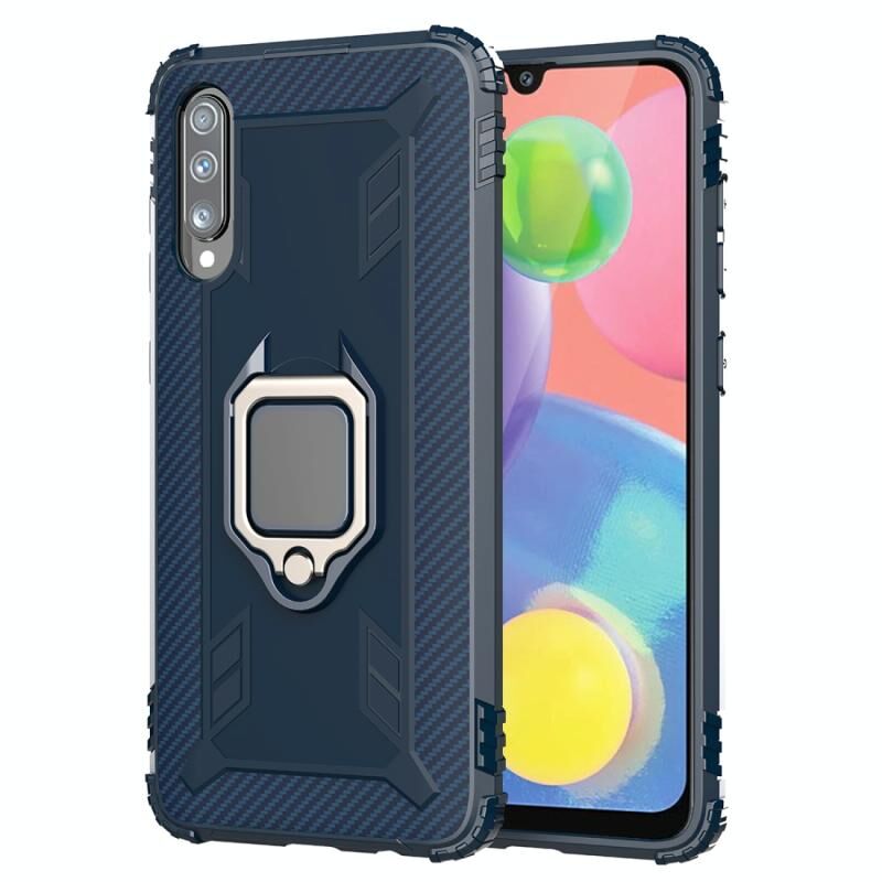 Για Wiko View 4 / View 4 Lite Προστατευτική θήκη από ανθρακονήματα με περιστρεφόμενο δακτύλιο 360 μοιρών (μπλε)
