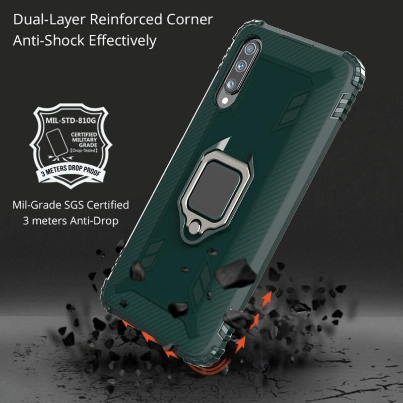 Για Wiko View 4 / View 4 Lite Προστατευτική θήκη από ανθρακονήματα με περιστρεφόμενο δακτύλιο 360 μοιρών (πράσινο)