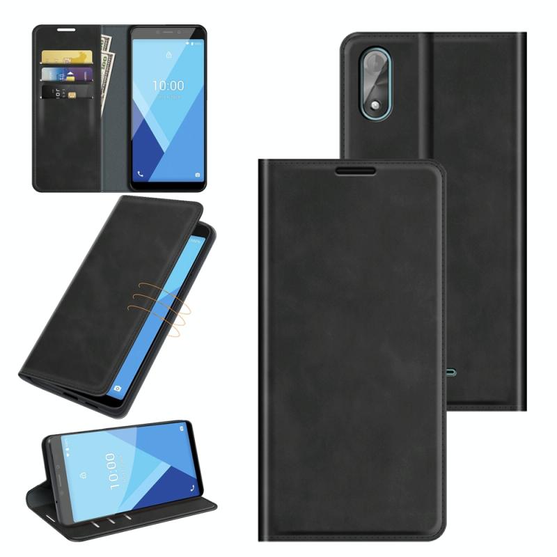 For Wiko Y51 Retro-skin Business Magnetic Suction Leather Case with Holder & Card Slots & Wallet(Black)