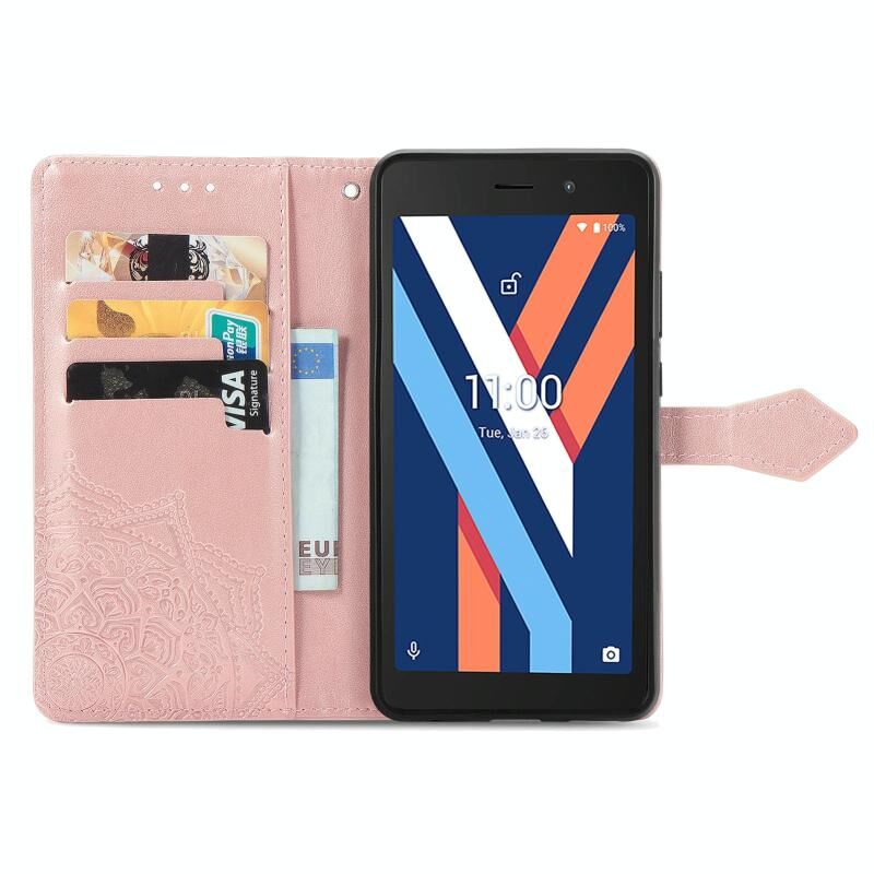 Για το Wiko Y52 Mandala λουλούδι ανάγλυφο Flip δερμάτινη θήκη τηλεφώνου (Ροζ χρυσός)