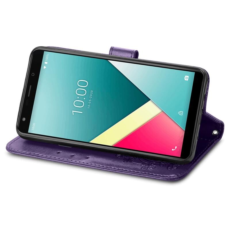 Για το Wiko Y61 Τέσσερα φύλλα κούμπωμα ανάγλυφη αγκράφα Κινητό τηλέφωνο προστασία δερμάτινη θήκη με κορδόνι & υποδοχή για κάρτες & πορτοφόλι & βραχίονα λειτουργία (Μωβ)