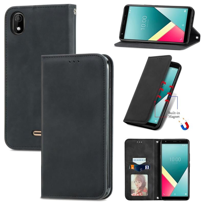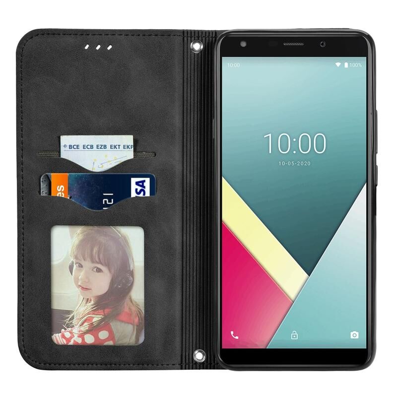 Για το Wiko Y61 Retro Skin Feel Business Μαγνητική οριζόντια Flip δερμάτινη θήκη με υποδοχές για κάρτες & πορτοφόλι & κορνίζα φωτογραφιών(Μαύρο)
