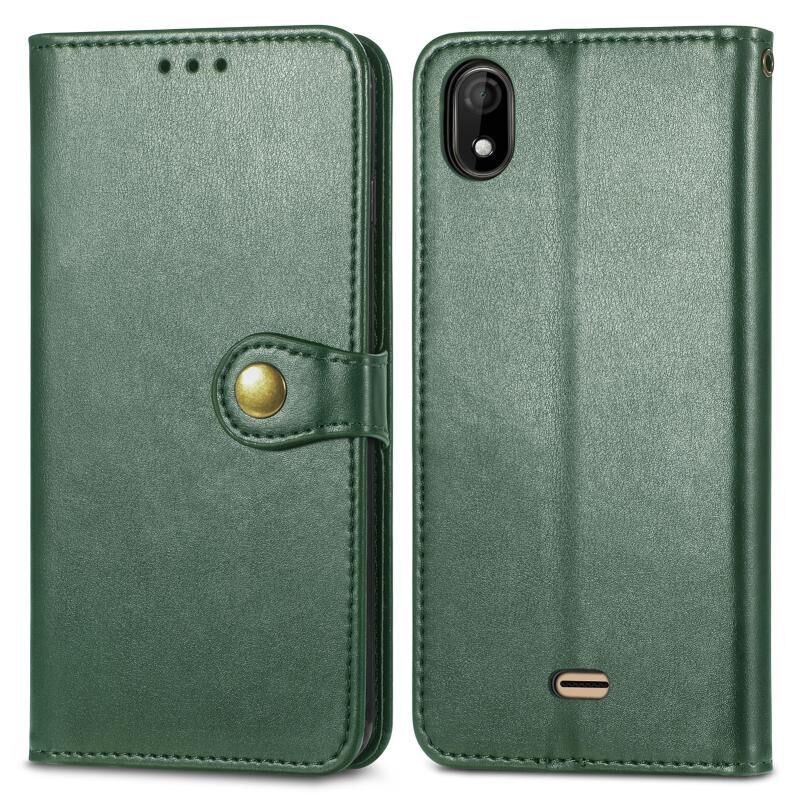 Για το Wiko Y61 Αμιγές χρώμα δερμάτινη θήκη τηλεφώνου με αγκράφα & κορνίζα φωτογραφιών & υποδοχή κάρτας & πορτοφόλι & λειτουργία Stand (πράσινο)