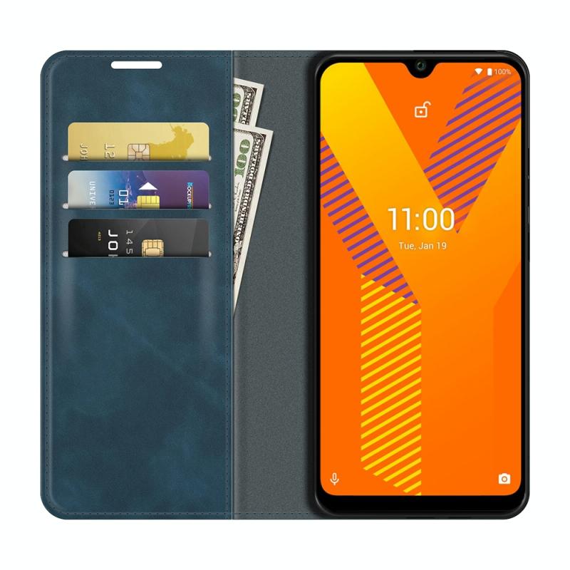 For Wiko Y62 Retro-skin Business Magnetic Suction Leather Case with Holder & Card Slots & Wallet(Dark Blue)