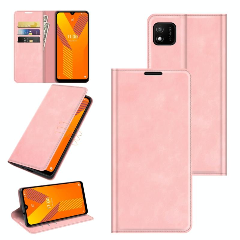 For Wiko Y62 Retro-skin Business Magnetic Suction Leather Case with Holder & Card Slots & Wallet(Pink)