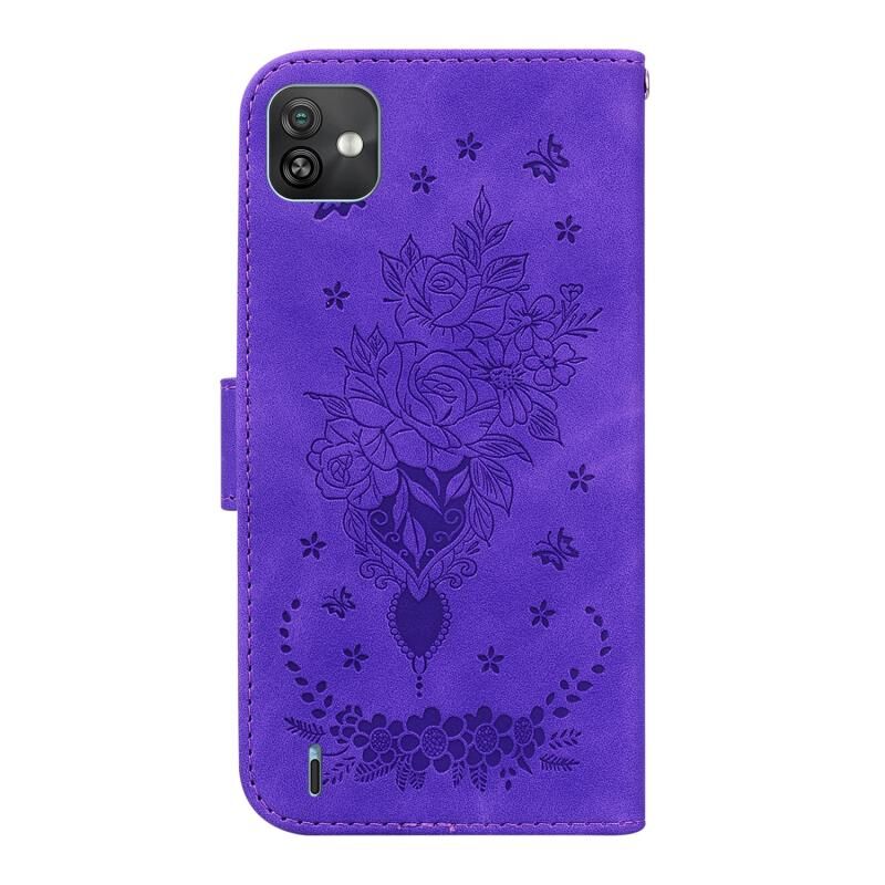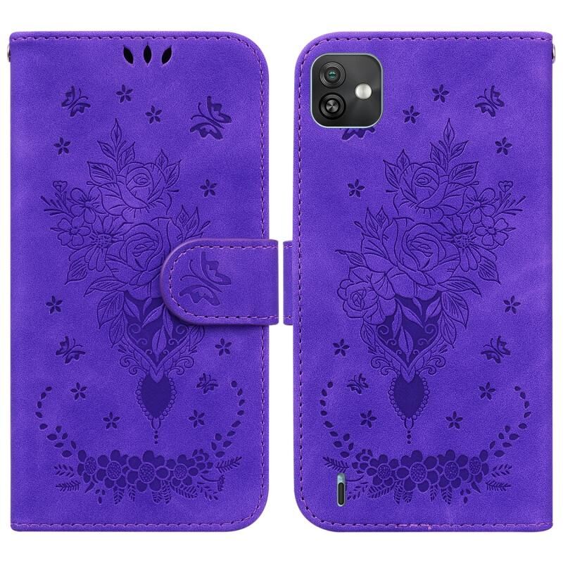 Για το Wiko Y82 Πεταλούδα Rose ανάγλυφη δερμάτινη θήκη τηλεφώνου (μωβ)