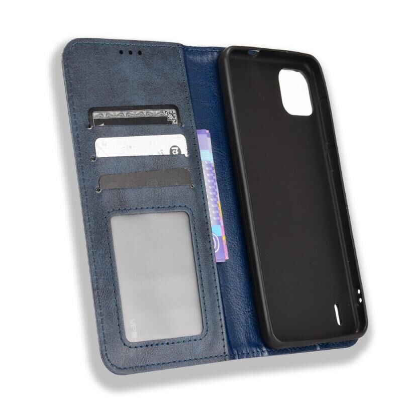 Για το Wiko Y82 Μαγνητική πόρπη Retro Crazy Horse δερμάτινη θήκη τηλεφώνου (μπλε)