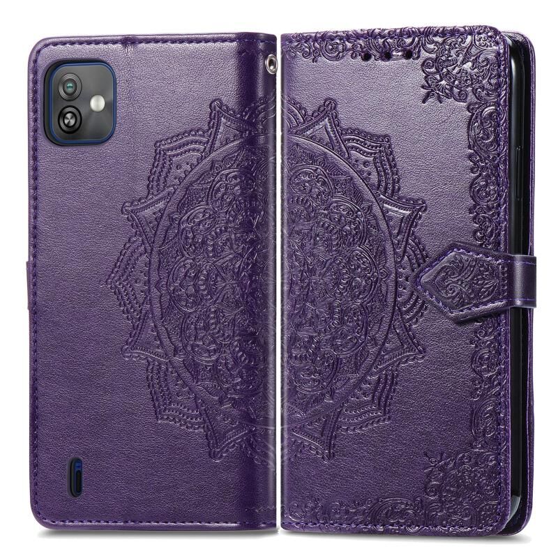 Για το Wiko Y82 Mandala λουλούδι ανάγλυφο Flip δερμάτινη θήκη τηλεφώνου (μωβ)