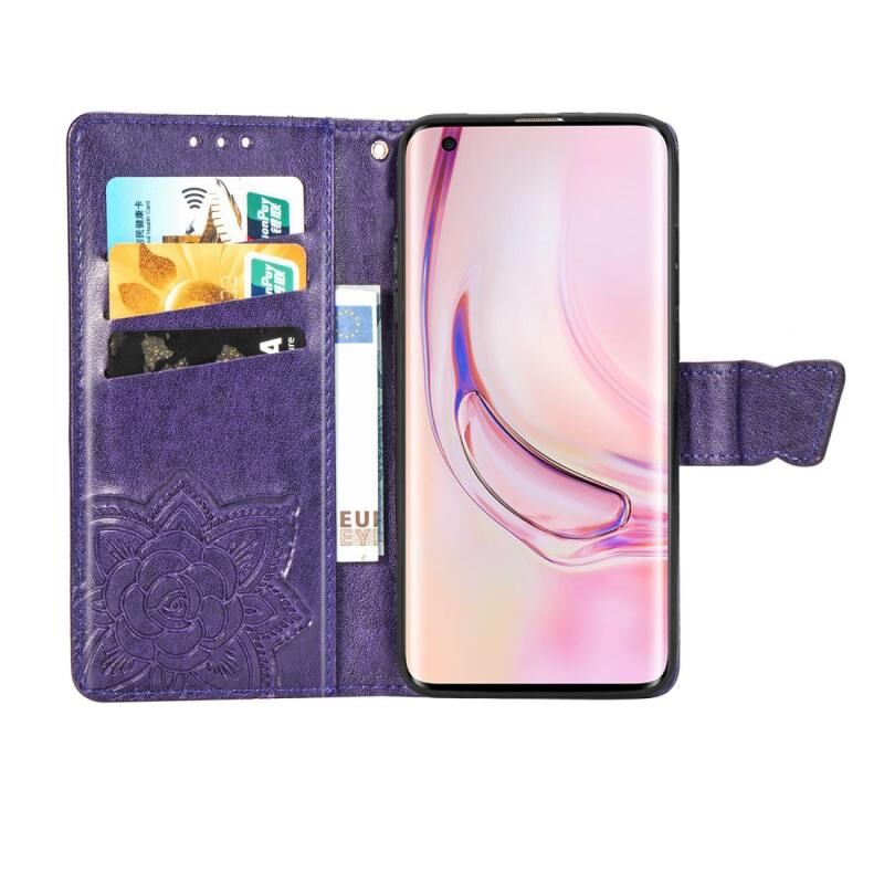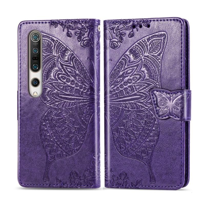 Θήκη δέρματος οριζόντιας αναδίπλωσης για Xiaomi 10 με ανάγλυφο σχέδιο πεταλούδας και λουλουδιών, με βάση στήριξης / υποδοχή κάρτας / πορτοφόλι / κορδόνι (Γκρι)