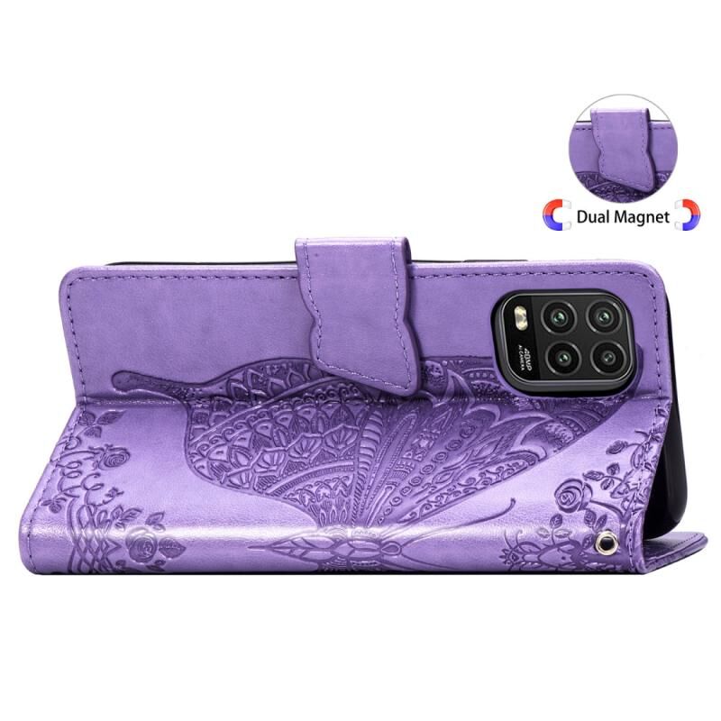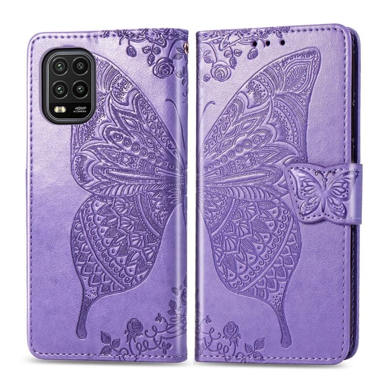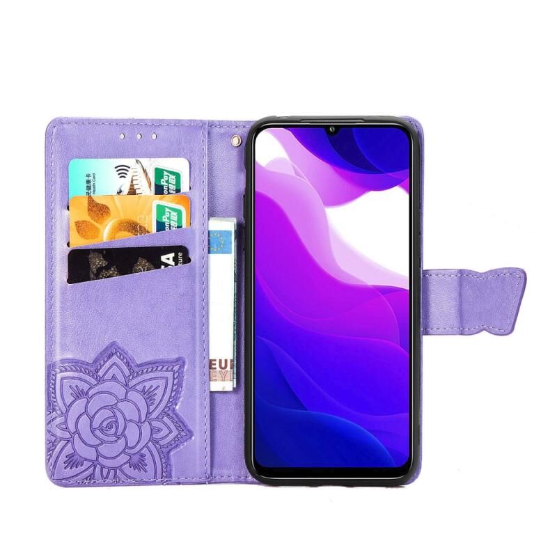 Θήκη δέρματος οριζόντιας αναδίπλωσης για Xiaomi 10 Lite 5G με ανάγλυφο σχέδιο πεταλούδας και λουλουδιών, με βάση / υποδοχή κάρτας / πορτοφόλι / κορδόνι (Μαύρο)