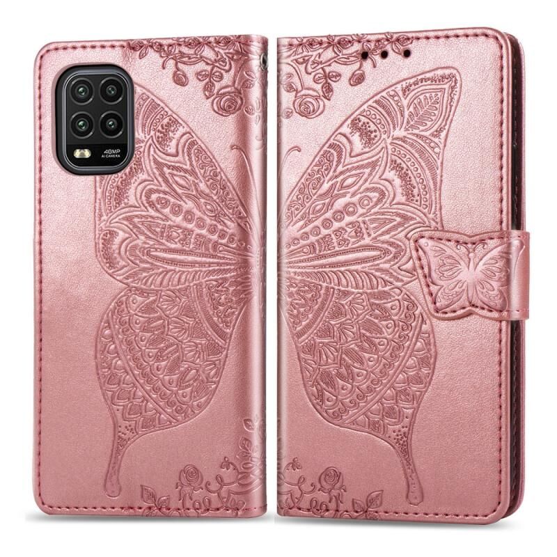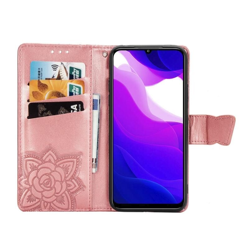 Θήκη δέρματος οριζόντιας αναδίπλωσης για Xiaomi 10 Lite 5G με ανάγλυφο σχέδιο πεταλούδας και λουλουδιών, με βάση / υποδοχή κάρτας / πορτοφόλι / κορδόνι (Μαύρο)