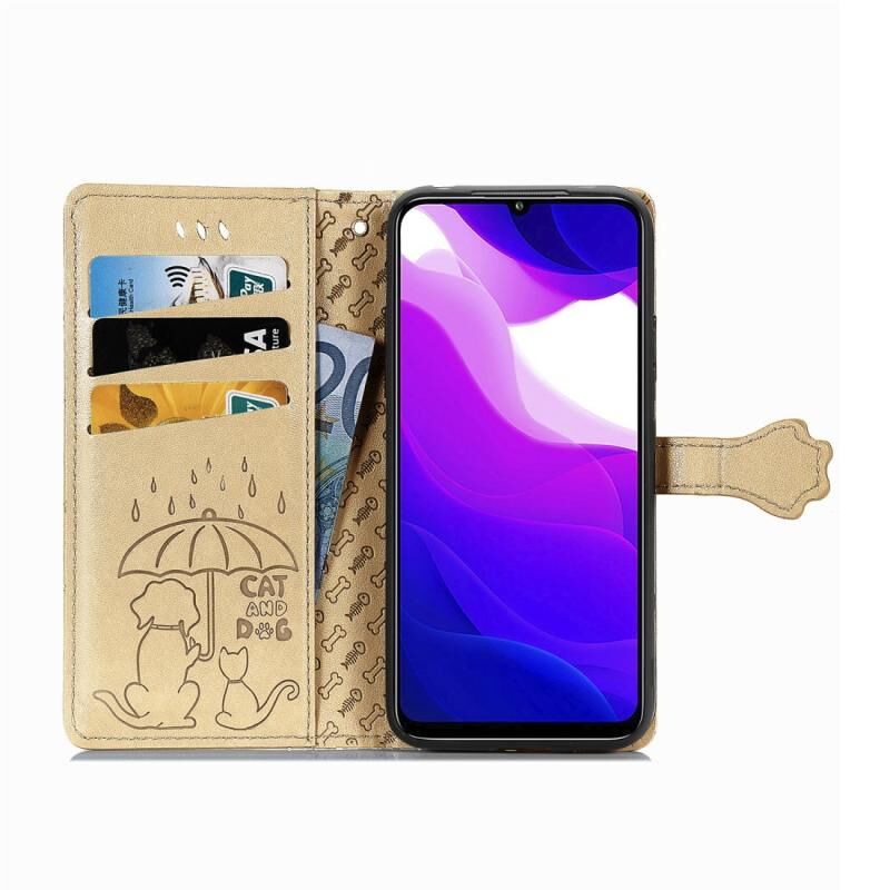Για Xiaomi 10 Lite 5G Χαριτωμένη Θήκη Δέρματος Οριζόντιας Αναδίπλωσης με ανάγλυφα σχέδια Γάτας και Σκύλου με Στήριγμα / Θήκη Κάρτας / Πορτοφόλι / Λουρί (Κίτρινο)