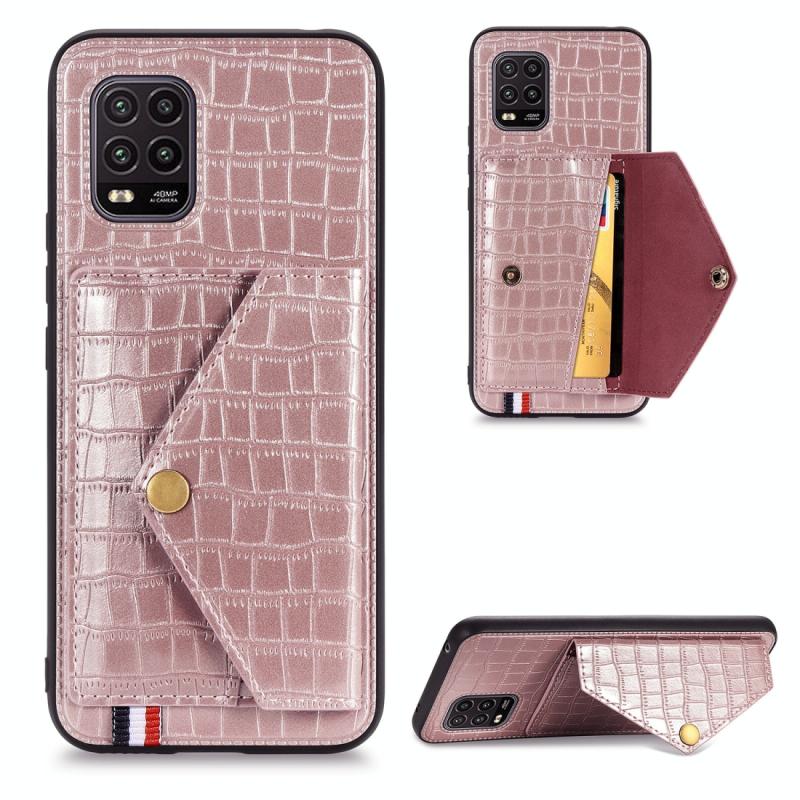 Για Xiaomi 10 Lite Θήκη με Δερμάτινη Υφή Κροκόδειλου, Κάρτες & Μαγνήτη (Ροζ Χρυσό)