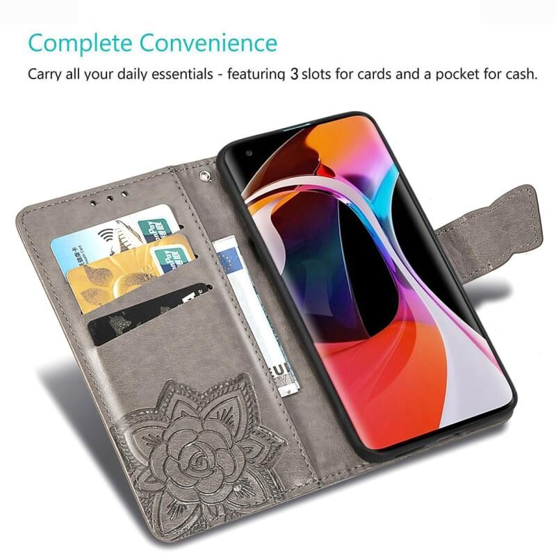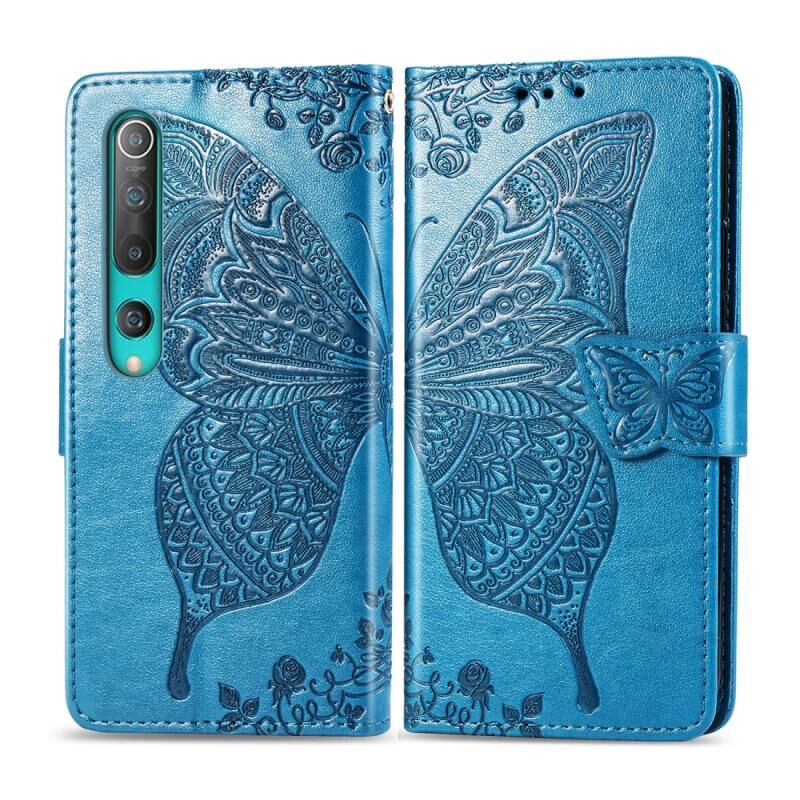 Θήκη δέρματος οριζόντιας αναδίπλωσης για Xiaomi 10 Pro με ανάγλυφο σχέδιο πεταλούδας και λουλουδιών, με βάση στήριξης / υποδοχή κάρτας / πορτοφόλι / κορδόνι (Μπλε)