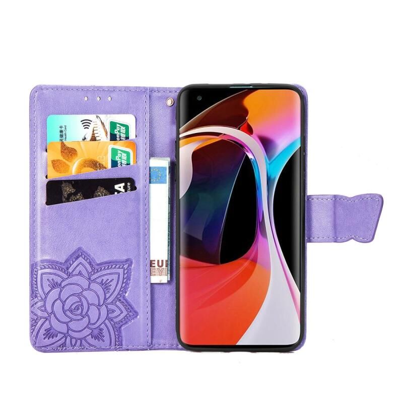 Θήκη δέρματος οριζόντιας αναδίπλωσης για Xiaomi 10 Pro με ανάγλυφο σχέδιο πεταλούδας και λουλουδιών, με βάση στήριξης / υποδοχή κάρτας / πορτοφόλι / κορδόνι (Μαύρο)