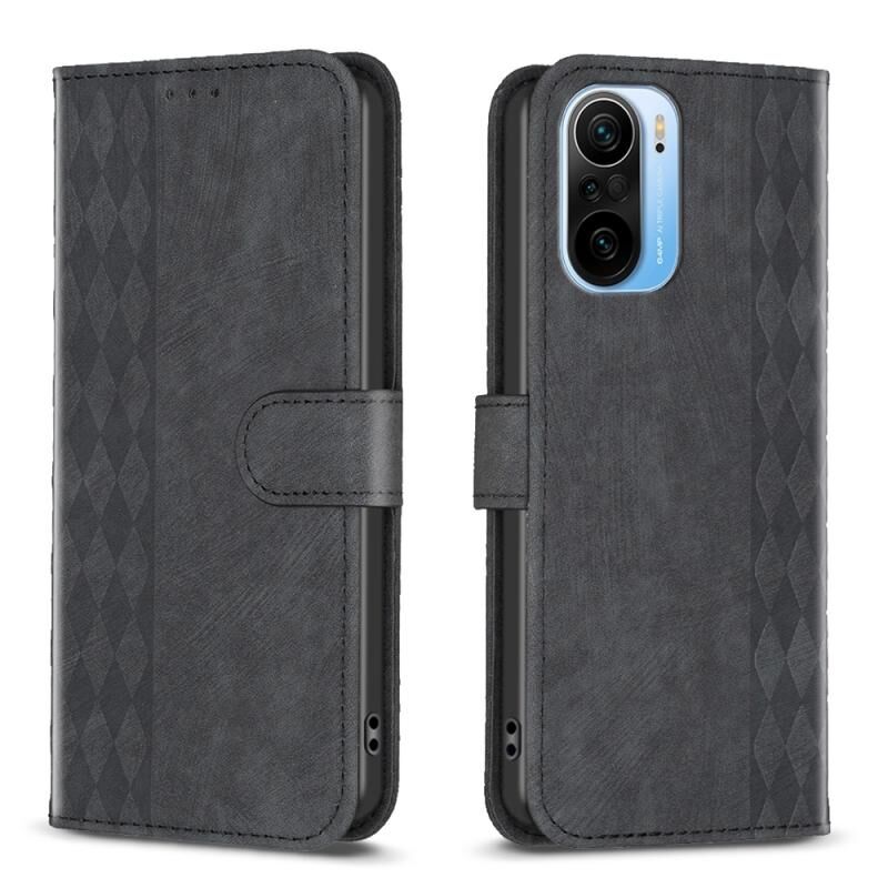 Για Xiaomi 11i / Redmi K40 καρό ανάγλυφη δερμάτινη θήκη τηλεφώνου (μαύρο)