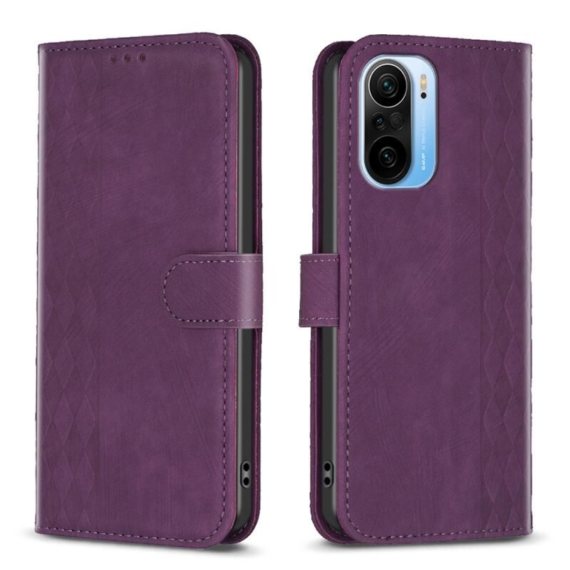 Για Xiaomi 11i / Redmi K40 καρό ανάγλυφη δερμάτινη θήκη τηλεφώνου (μωβ)