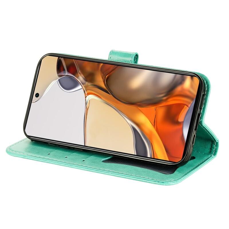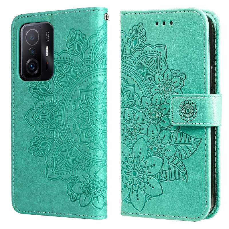 Για Xiaomi 11T / 11T Pro 7-πέταλα λουλούδια ανάγλυφο οριζόντια Flip δερμάτινη θήκη τηλεφώνου με θήκη & υποδοχές καρτών (πράσινο)