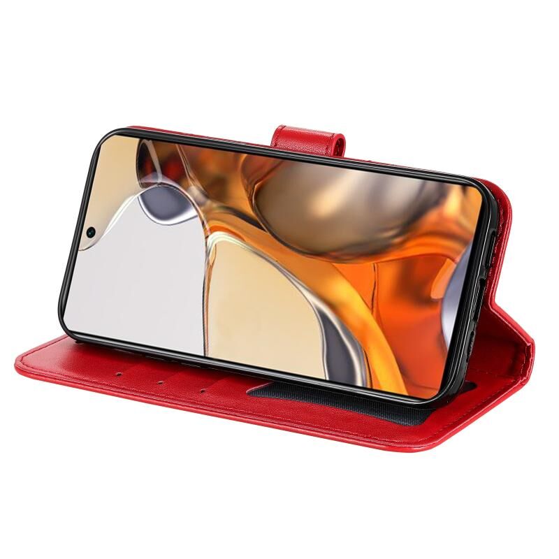 Για Xiaomi 11T / 11T Pro 7-πέταλα λουλούδια ανάγλυφο οριζόντια Flip δερμάτινη θήκη τηλεφώνου με θήκη & υποδοχές καρτών (κόκκινο)