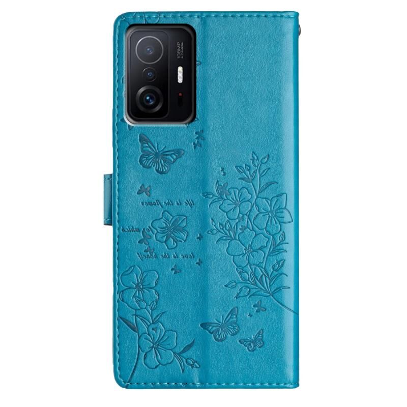 Θήκη τηλεφώνου από δέρμα με πεταλούδες και λουλούδια για Xiaomi 11T / 11T Pro (Χρυσό)