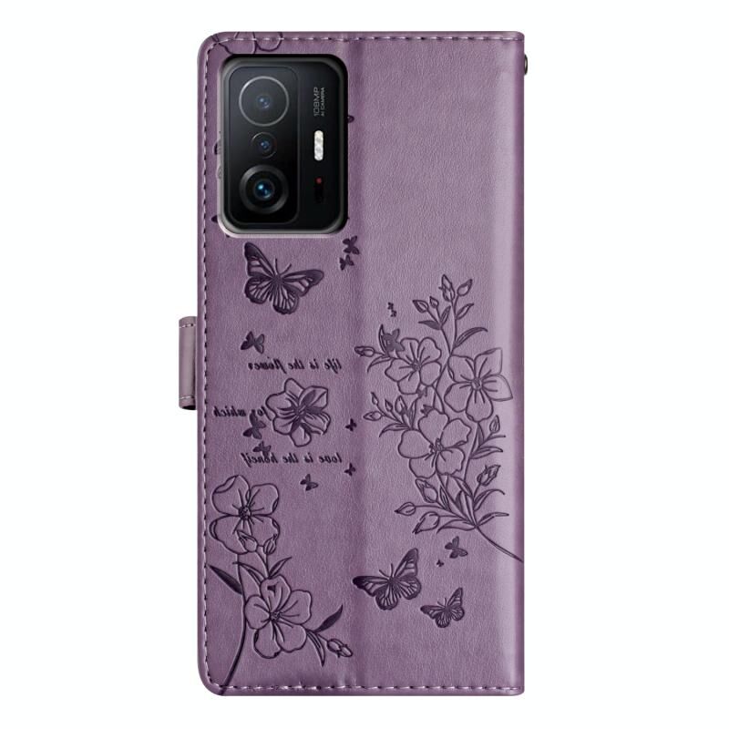 Θήκη τηλεφώνου από δέρμα με πεταλούδες και λουλούδια για Xiaomi 11T / 11T Pro (Χρυσό)