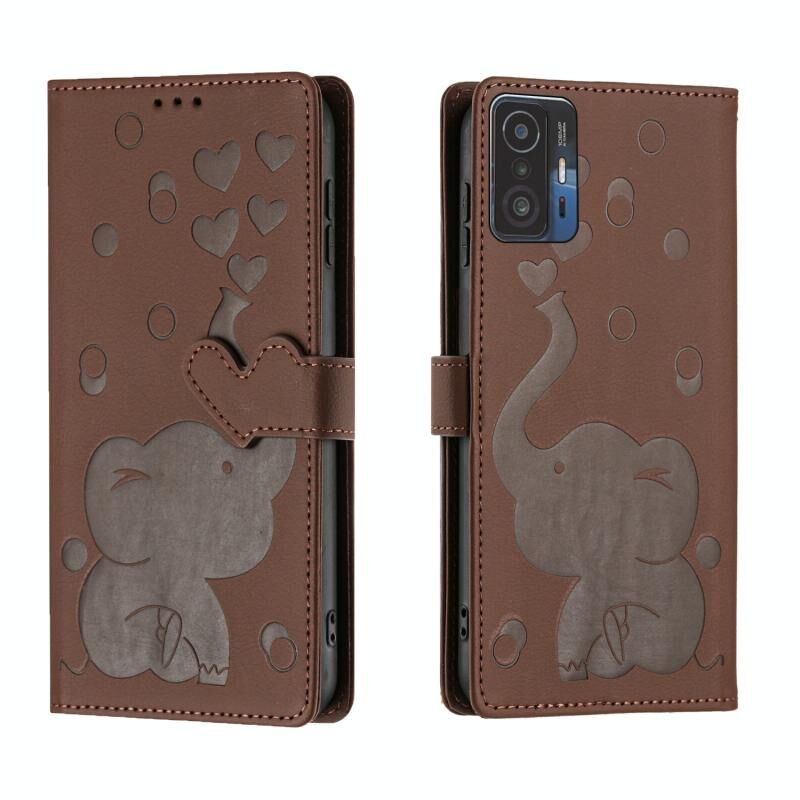 Θήκη τηλεφώνου από δέρμα με ανάγλυφο σχέδιο καρτούν ελέφαντα για Xiaomi 11T / 11T Pro (Καφέ)