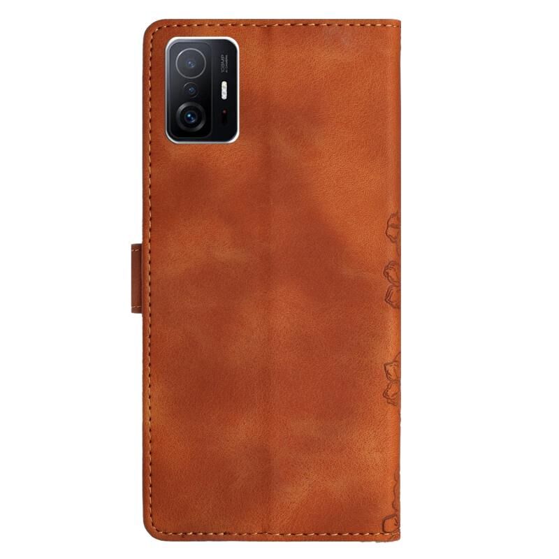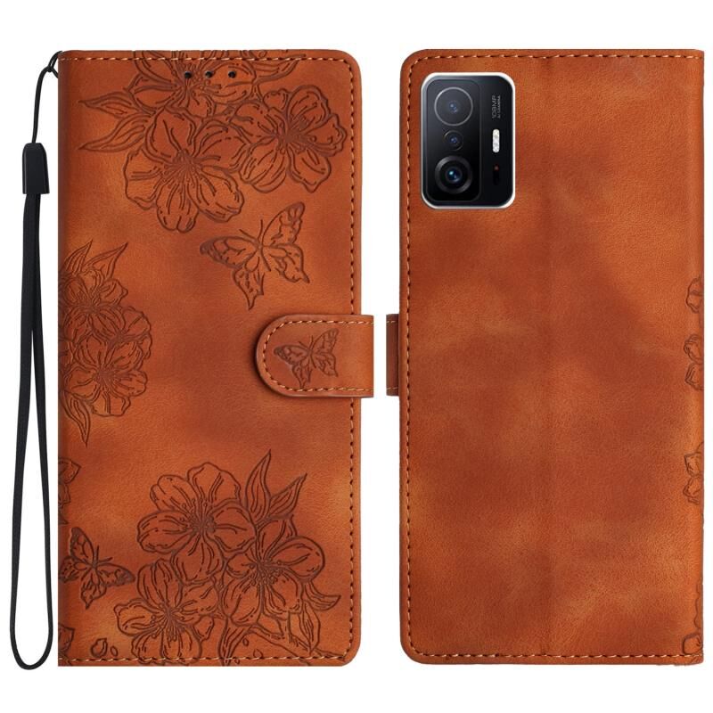 Θήκη τηλεφώνου Xiaomi 11T / 11T Pro με ανάγλυφο PU υφή Cherry Blossom Butterfly (Καφέ)