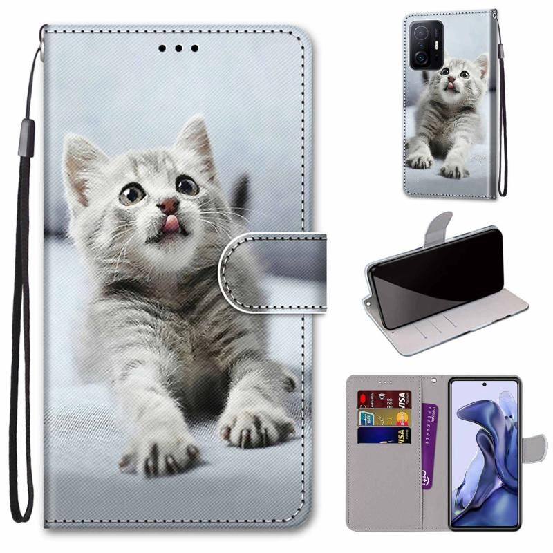 Θήκη τηλεφώνου δέρμα κατασκευής οριζόντιας αναδίπλωσης για Xiaomi 11T / 11T Pro με πολύχρωμο σχέδιο, υφή σταυρού, βάση στήριξης, θήκες καρτών, πορτοφόλι και κορδόνι (Ροζ Λουλούδια, Γέφυρα του Πύργου).