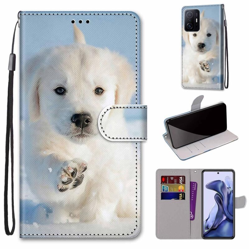 Θήκη τηλεφώνου δέρμα κατακόρυφης αναδίπλωσης για Xiaomi 11T / 11T Pro με πολύχρωμο σχέδιο, υφή σταυρού, βάση στήριξης, θήκες καρτών, πορτοφόλι & λουρί (Snow Puppy)