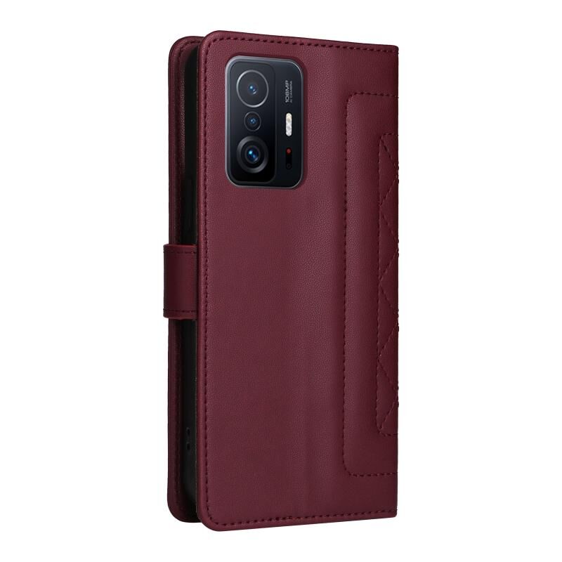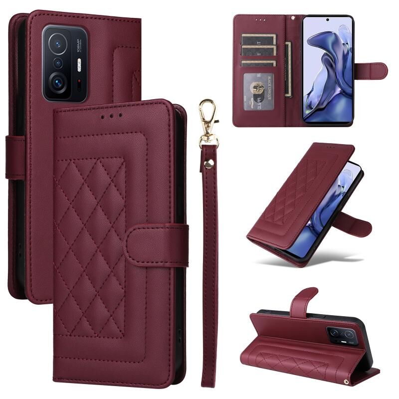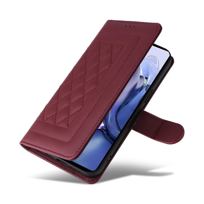 Για Xiaomi 11T / 11T Pro Diamond Lattice Leather Flip Phone Case (Wine Red)